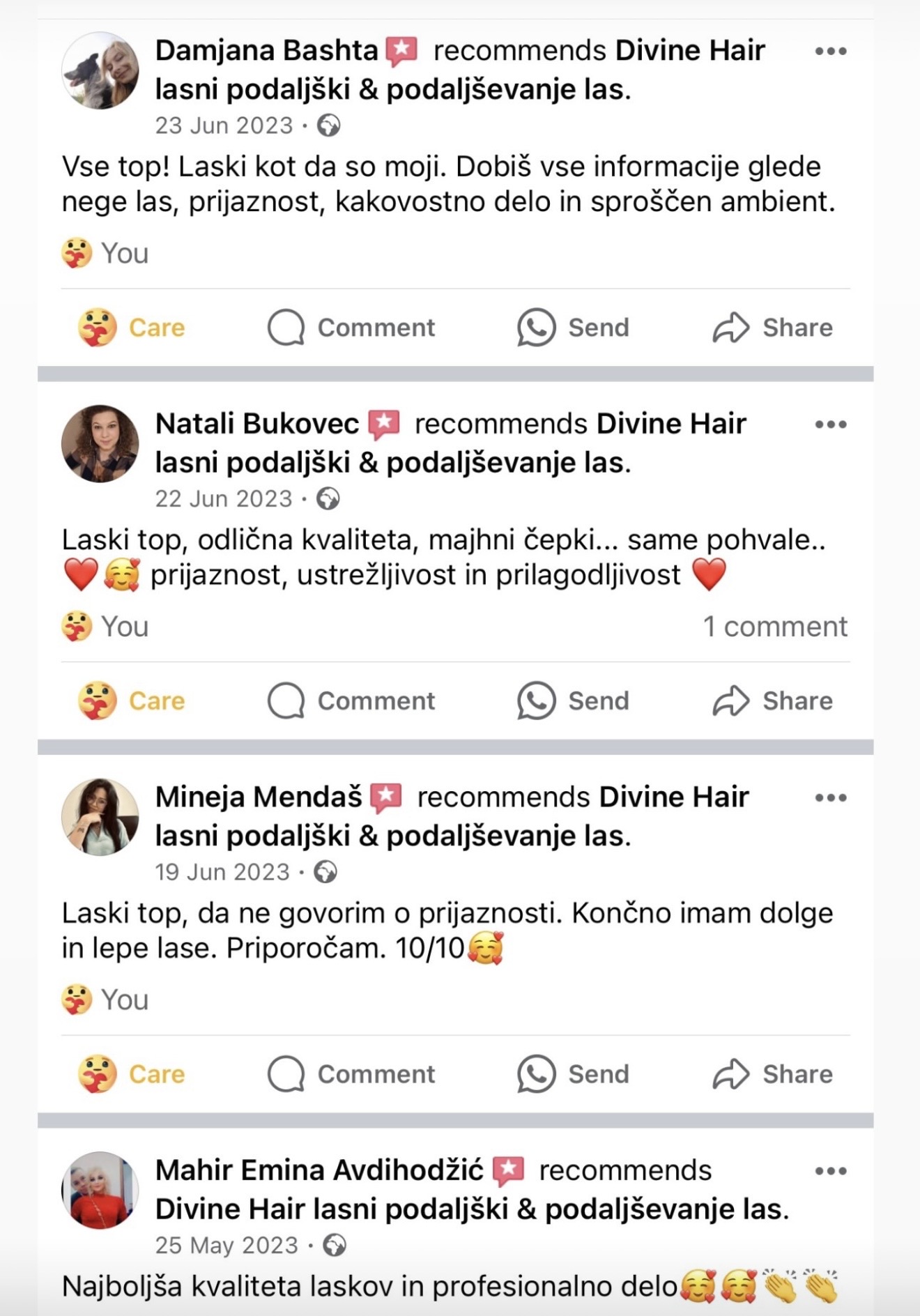 – specializirani za podaljševanje in zgostitve las z različnimi metodami