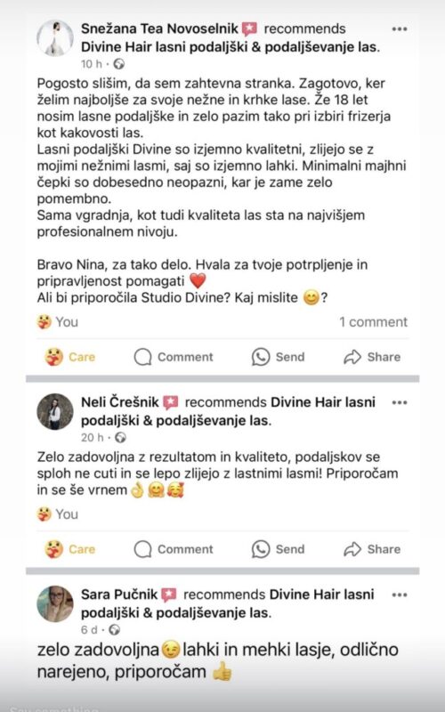 – lasni podaljški na voljo za nakup tudi za frizerske salone